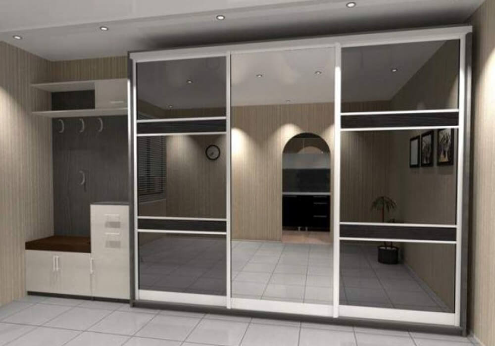 Шкаф с зеркалом добавляет элегантности и в то же время визуально увеличивает пространство, что особенно ценно в небольших шкафах. Зеркальные фасады можно комбинировать с металлической или деревянной отделкой, что создает эффектный контраст.